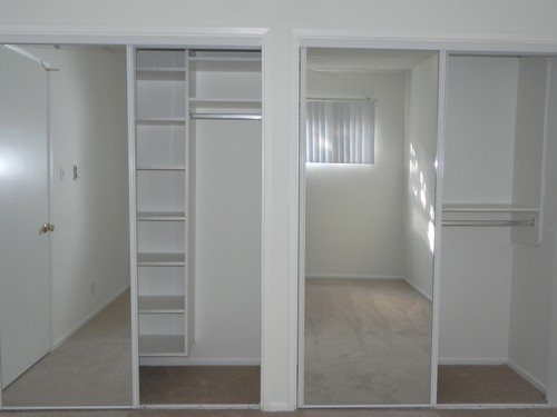 - Mirrored wardrobe doors and custom California Closet organizers